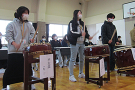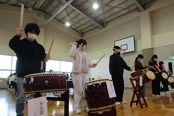 国際社会の授業で和太鼓を体験しました。