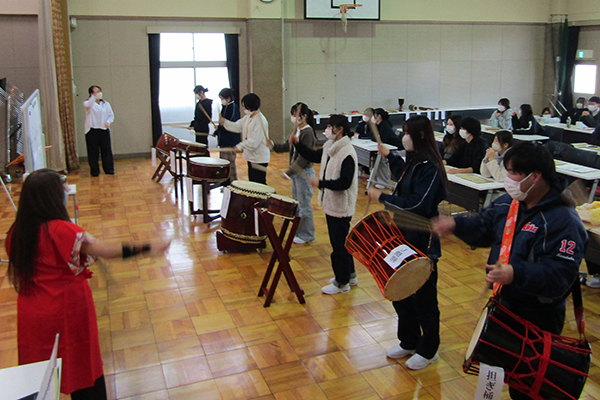 日本文化の魅力だけではなく、同じ太鼓を叩いてみても1人ひとりの音や音の強さが違い、その中で他者との違いや相手を受け入れることとはどういうことなのかを考えさせられる授業となりました。