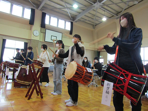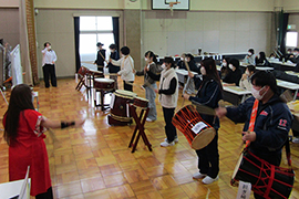 国際社会の授業で和太鼓を体験しました。