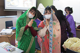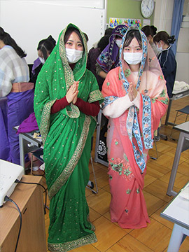 今日の授業では、サリー体験やスリランカのアップルティーを味わう中で、異国の文化や習慣を学び、多文化共生とは何かをそれぞれが考えるきっかけになりました。