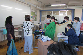 よりよい看護の実現には、豊かな心が必要であるとの考えのもと、ホリスティックケアや日本の伝統、新生児のお世話を体験していただきました。このように当校では、単に講義を行うだけでなく体験型の魅力ある授業づくりを心掛けております。
