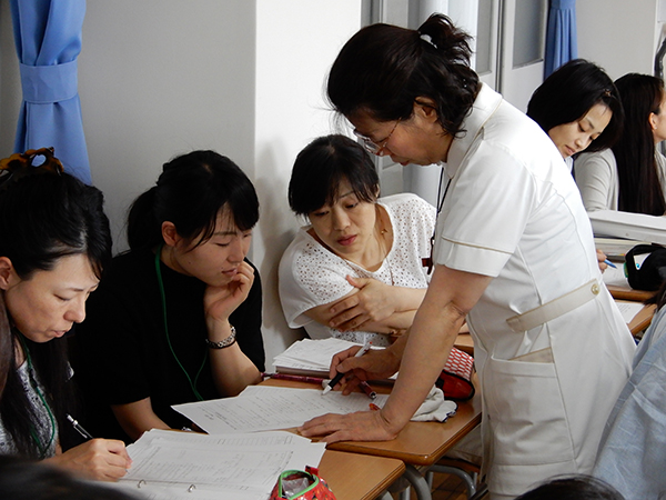 お父さん、お母さんでもある学生は沐浴経験もありますが、再度目的に沿って沐浴を学び、未経験の学生は赤ちゃんを慎重に丁寧に沐浴する姿がみられました。