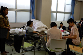 美味しい物を食べて元気いっぱいの利用者さんたちは、学生たちに「若い頃を想い出し、私も楽しむからあなたたちも楽しまなあかんよ」などとお話してくださり、漲るパワーを逆にいただきました。利用者さんやご家族が笑顔で楽しんでおられる姿に、学生の私たちもうれしかったです!
